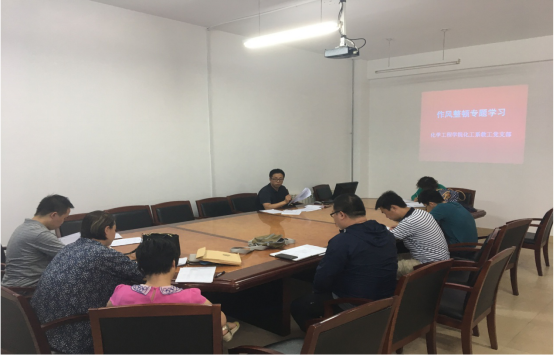 6月29日下午,化学工程学院化工系教工党支部在综合楼311开展作风整顿专题学习,期间传达了大庆师范作风整顿实施方案和化学工程学院作风整顿学习计划,并集中学习了习近平总书记在我省关于改进干部作风的讲话精神,毛泽东等老一辈革命家关于作风建设的科学论述,省第十二次党代会关于开展作风整顿的有关要求等。通过学习进一步增强了改进作风的思想自觉和行动自觉。