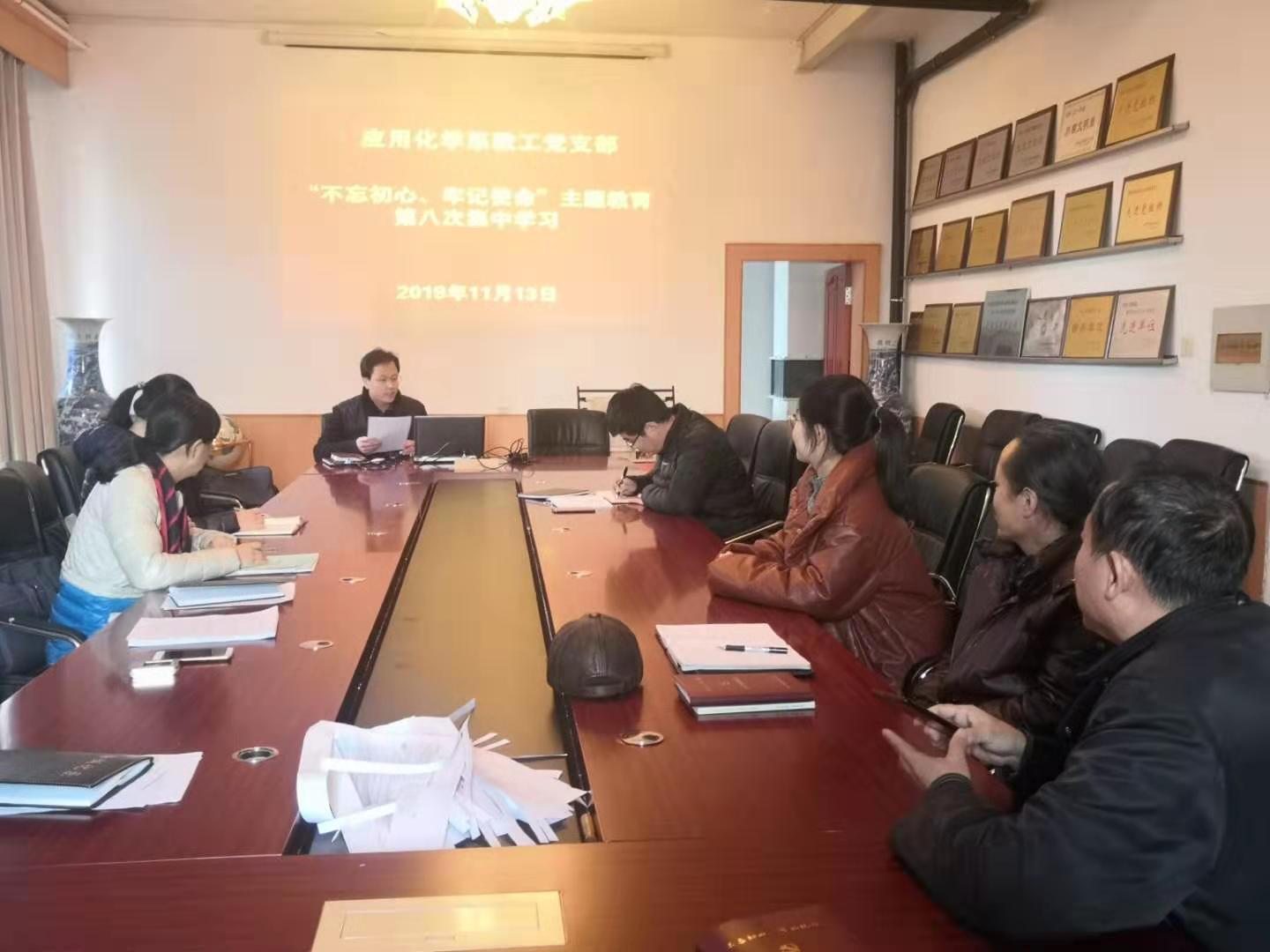 化学工程学院各党支部于11月13日下午举行主题教育第八次集中学习,传达学习党的十九届四中全会精神,会议强调学习要与“不忘初心、牢记使命”主题教育有机结合,与学院年初制定的重点工作相结合,将全会精神学深吃透。充分发挥学院学科优势,做好工程教育专业认证工作;通过不断深化习近平新时代中国特色社会主义思想的理论和实践研究,解决好学院党的建设工作;充分利用企业专家资源,做好校企深度融合;充分发挥学院各大课题组科研团队优势,紧密结合大庆“油头化尾”战略,不断提升服务地方经济能力。通过各个党支部集中学习研讨,深化教育引导,在全院党员、干部、师生中将学习全会精神引向深入。