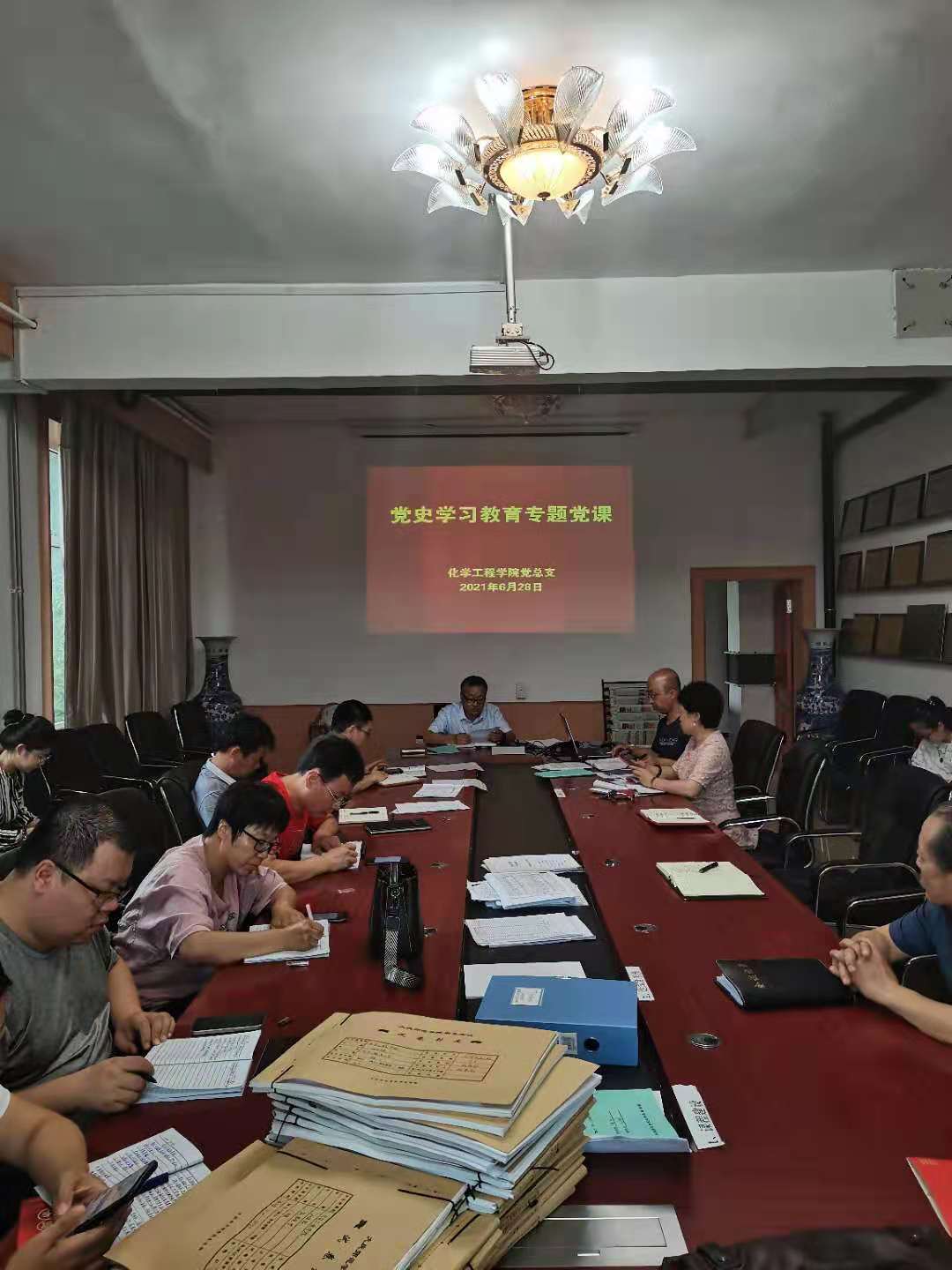 2021年6月28日下午,化学工程学院党总支在化学楼224会议室开展党史学习教育专题党课,党总支书记刘洪胜为全体党员开展党课专题培训,他强调思想是行动的先导,理想信念是青年干部担当作为的动力源泉。作为共产党员,要增强勇立排头的责任感和使命感。要敢担当善作为,既要想干事、能干事、干成事,又要重实干、重担当、重实绩,撸起袖子加油干,凝聚形成创新创业的强大合力。