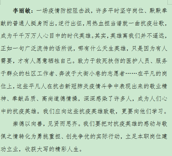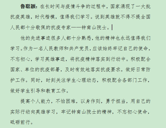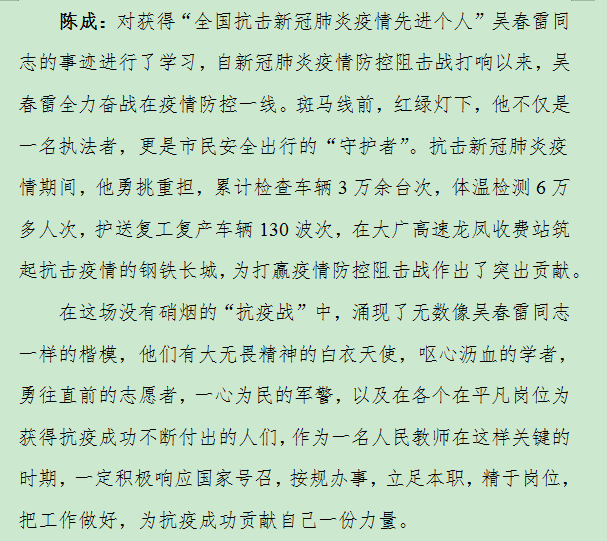 在学院党总支的统一安排下,4月10日,化学工程学院教工党支部开展了“学习抗疫英雄先进事迹,立足本职岗位做贡献”主题党日活动,支部31名党员全部参加了此次活动。支部党员认真学习了“共和国勋章”获得者钟南山,“人民英雄”国家荣誉称号获得者张伯礼、张定宇、陈薇等先进事迹,学习了习近平总书记重要讲话和指示精神,深刻感悟了抗疫英雄身上奉献担当的精神。通过深入交流学习体会,使党员同志们进一步加深了对生命至上、举国同心、舍生忘死、尊重科学、命运与共的伟大抗疫精神的理解,并为抗疫英雄事迹深受感动、深受鼓舞。通过此次主题党日活动,支部全体党员深受鼓舞、获益良多,纷纷表示作为一名党员,将以抗疫英雄为榜样,立足本职岗位,尽职尽责,在自己的岗位上多作贡献。