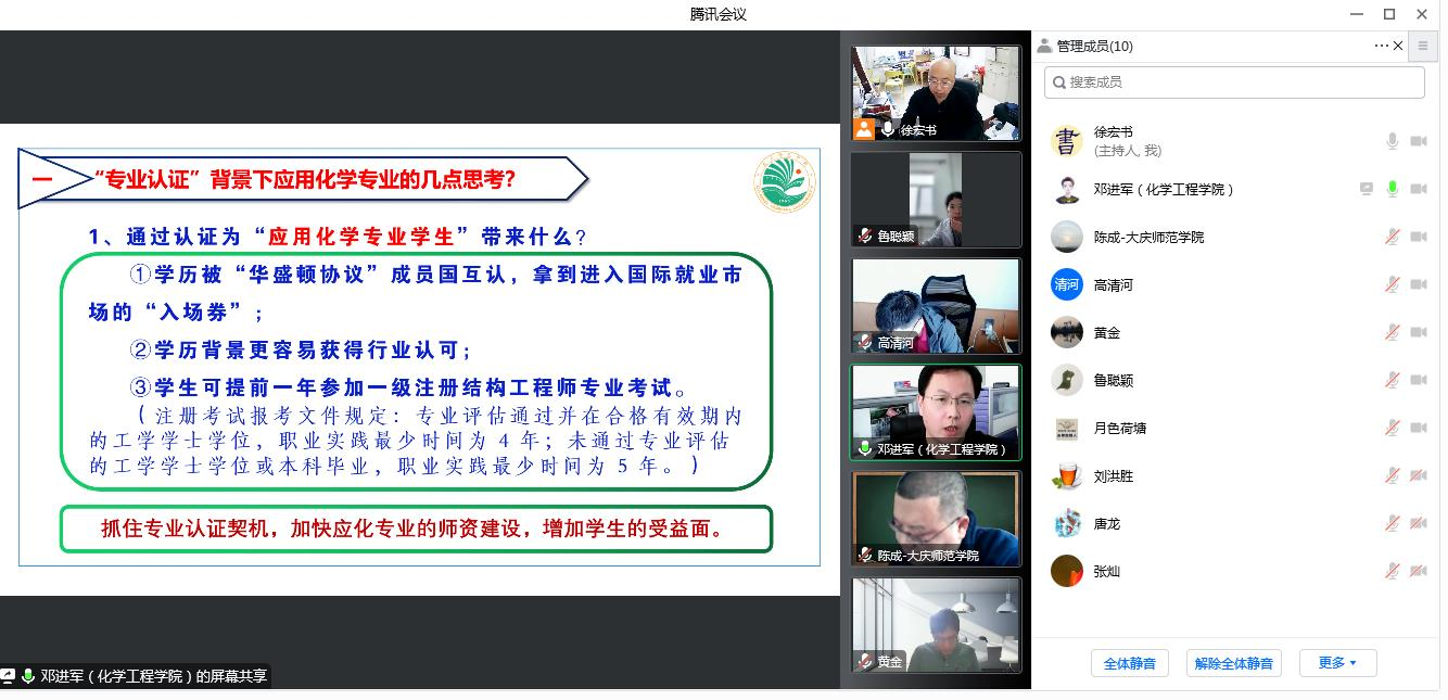 理论学习之后,应用化学系主任邓进军围绕“专业认证背景下应用化学专业人才培养的几点思考与实践”,油储系主任张灿围绕“解放思想,新工科背景下油气储运工程专业人才培养探索”进行了主题发言,大家根据两位同志的发言进行充分研讨,找出了存在的问题及不足,剖析了问题产生的根源,并给出工作思路和解决措施。