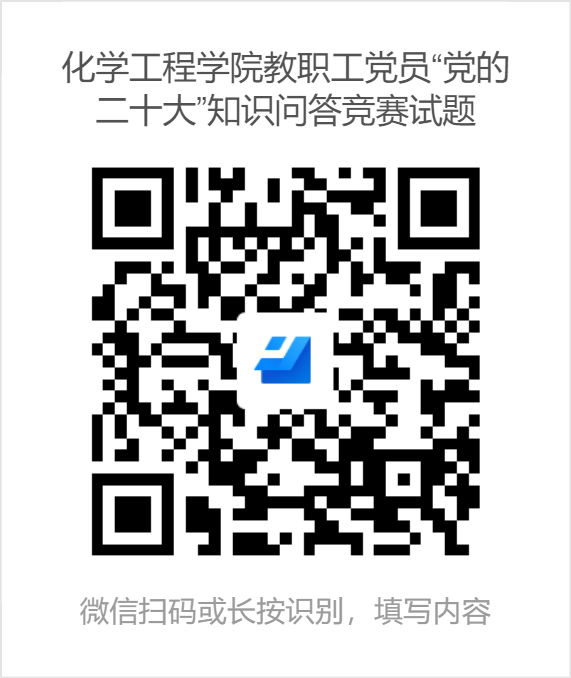 党的二十大进一步指明了党和国家事业的前进方向,是我们党团结带领全国各族人民在新时代新征程坚持和发展中国特色社会主义的政治宣言和行动纲领,全体党员要深入学习贯彻党的二十大精神,在党的旗帜下团结成“一块坚硬的钢铁”,心往一处想、劲往一处使,推动中华民族伟大复兴号巨轮乘风破浪、扬帆远航,为进一步深入学习贯彻党的二十大精神,掀起全体党员参与的学习热潮,积极引导党员教师深刻领会和把握大会的精神实质和丰富内涵,切实把行动和思想统一到党的二十大精神上来,把力量凝聚到党的二十大确定的各项任务上来,推进学校特色应用型本科示范高校建设,化学工程学院党总支于2022年11月16日举办党的二十大知识问答竞赛活动。