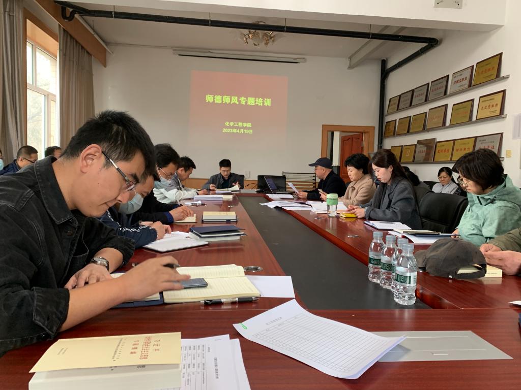 2023年4月19日下午,为进一步增强教师的责任感、使命感、荣誉感,规范职业行为,明确师德底线,化学工程学院组织全体教职工开展师德师风专题培训学习,会上,党总支副书记徐宏书同志领学了《新时代高校教师职业行为十项准则》,引导广大教师努力成为有理想信念、有道德情操、有扎实学识、有仁爱之心的好老师。
