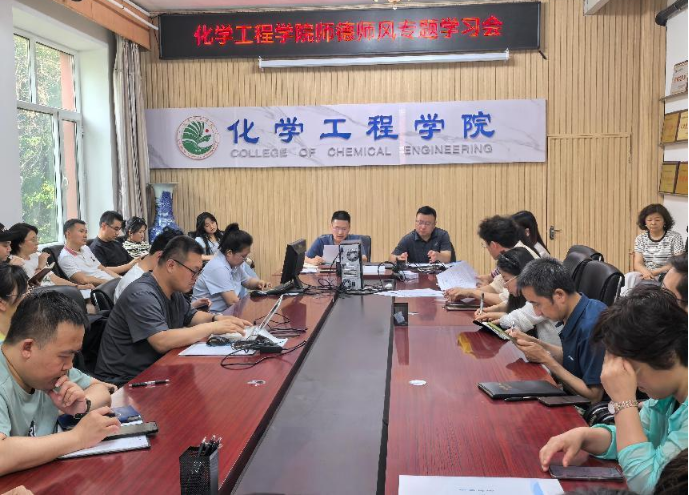 2025年6月25日,化学工程学院组织召开师德师风警示教育专题学习,通过案例学习、自查自纠、承诺践行等形式,进一步强化教师队伍思想政治建设,筑牢师德师风防线。