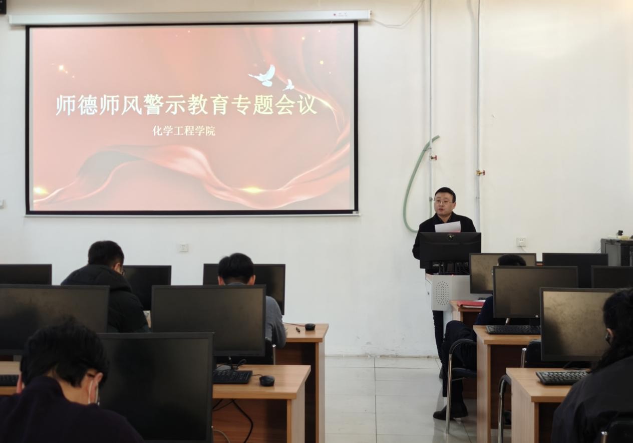 2025年12月17日,化学工程学院召开师德师风警示教育专题会议,学院党总支书记陶冶主持会议,全体教师参加。