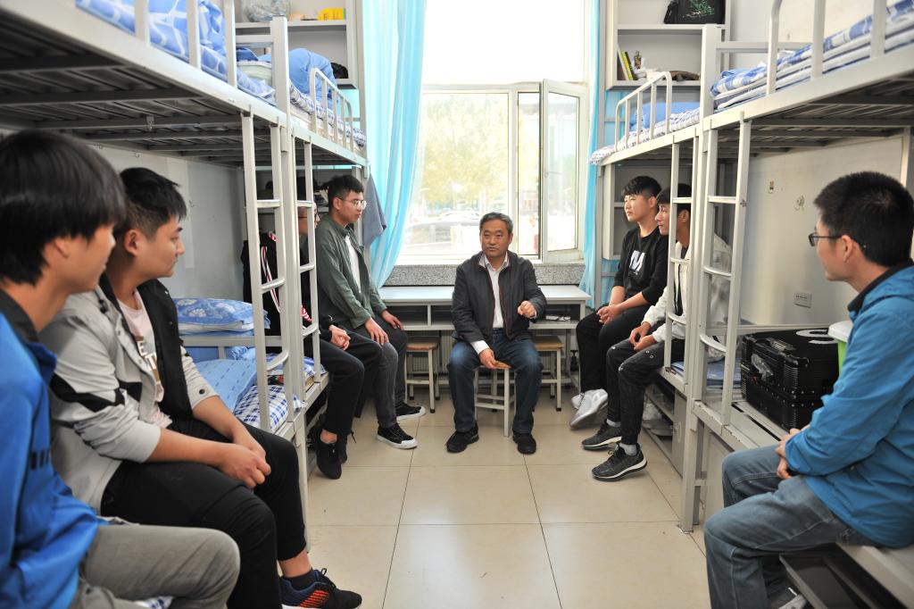 为贯彻落实“不忘初心、牢记使命”主题教育工作精神,继续做好“关爱中成长”主题教育活动,2019年9月16日上午,校党委书记徐克明教授深入第三学生公寓107寝室走访。