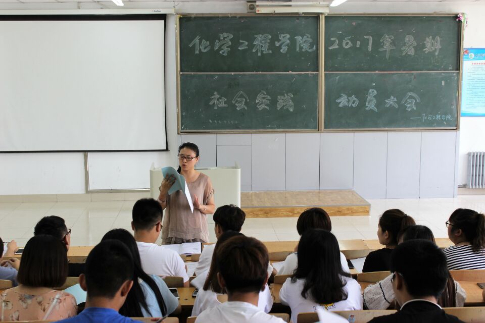 暑假将至,又到了每年暑期社会实践的时间,为了让同学们更好地了解暑期社会实践的意义和内容,化学工程学院辅导员郭明悦、韩冬分别在主楼203和主楼2-1召开了2017年暑期社会实践动员大会。会上,两位老师详细的介绍了关于社会实践的目的、内容、方式以及成绩评定的方法等,为大家解答实践上可能遇到的问题,并对学院今年的暑期社会实践具体内容作了部署。他们鼓励同学们多参加社会实践活动,通过社会实践活动掌握一些在校园内了解不到的专业知识和社会知识,为将来毕业走上工作岗位打下良好的基础。