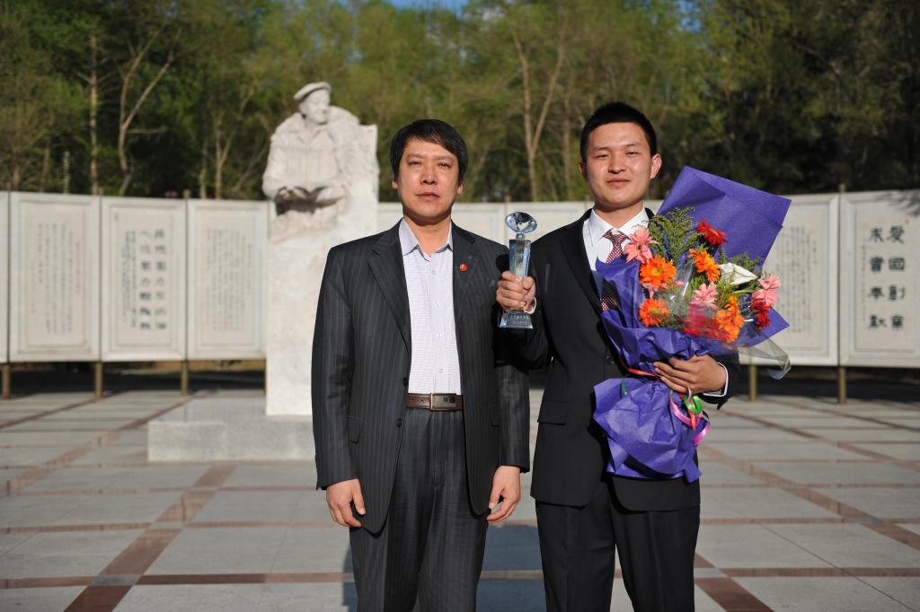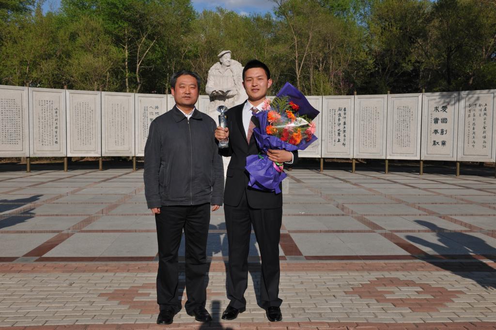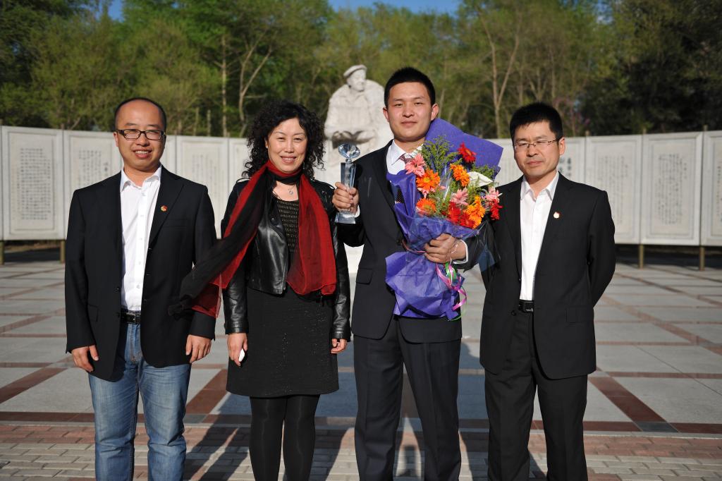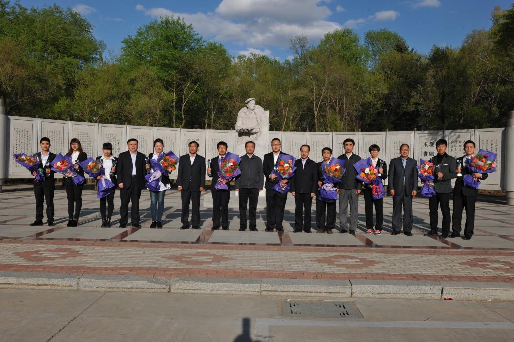 会议结束后,校领导与本届“十佳”青年在铁人塑像前合影留念。