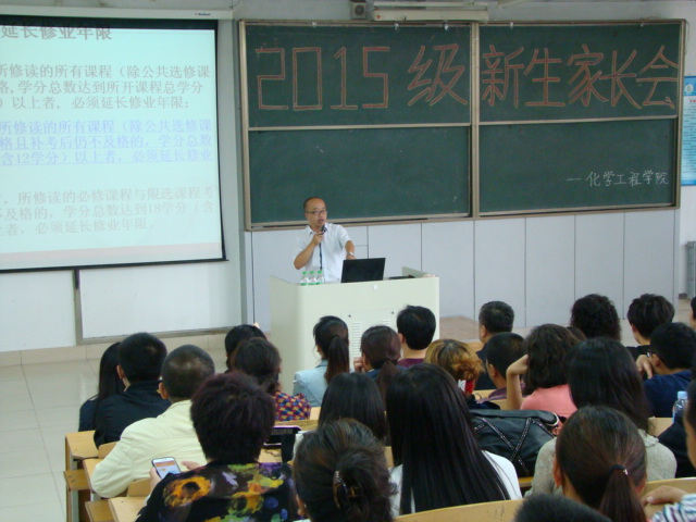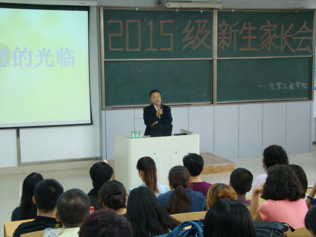 2015年9月8日下午3:20,化学工程学院召开了2015级新生家长会,历时一个半小时,出席会议的有化学工程学院院长刘洪胜、总支书记孙冬艳、副院长李卫宏、学生支部书记徐宏书、辅导员邱恒、各班班主任及15级全体学生家长、新生。