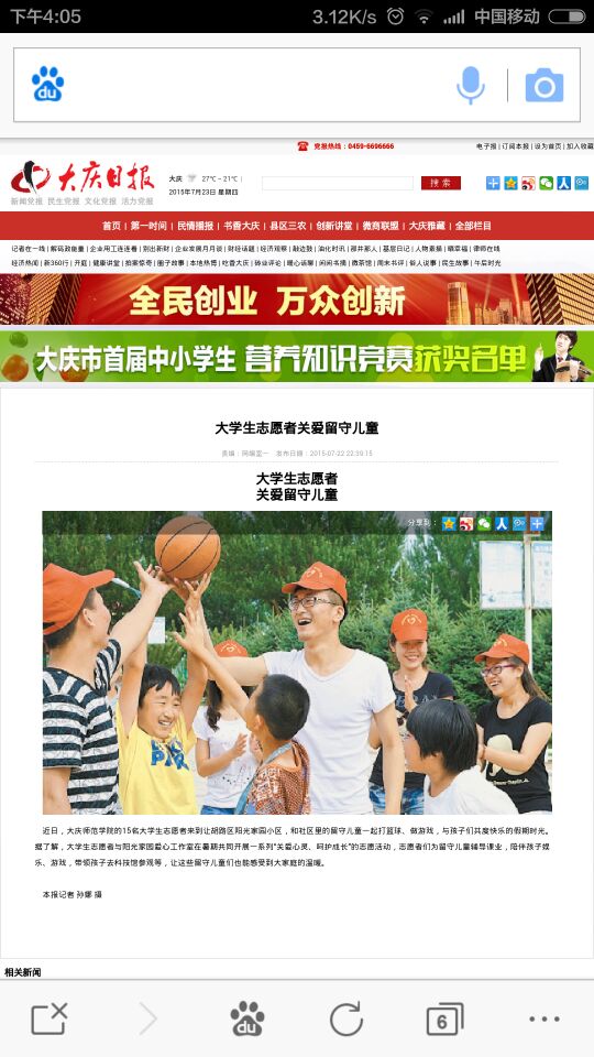 此项活动是我院大学生暑期社会实践活动中的一项内容,每年我院大学生都积极组织开展各项有意义的社会实践活动,为社会传递正能量。这次活动得到了社会新闻媒体的关注并在大庆日报头版头条报道了此项活动,也是对我院长期有效开展大学生思想政治教育工作的肯定。