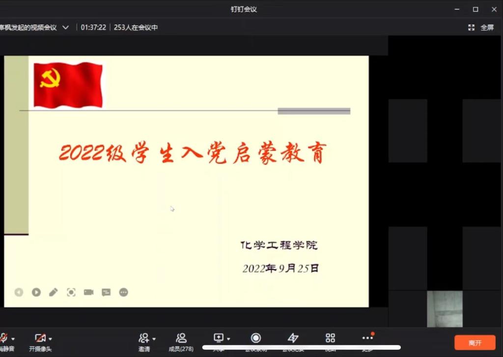 化学工程学院于9月25日召开全体新生线上会议,举行入党启蒙教育活动。会议由靳云鹏老师和韩冬老师主持,具体内容如下: