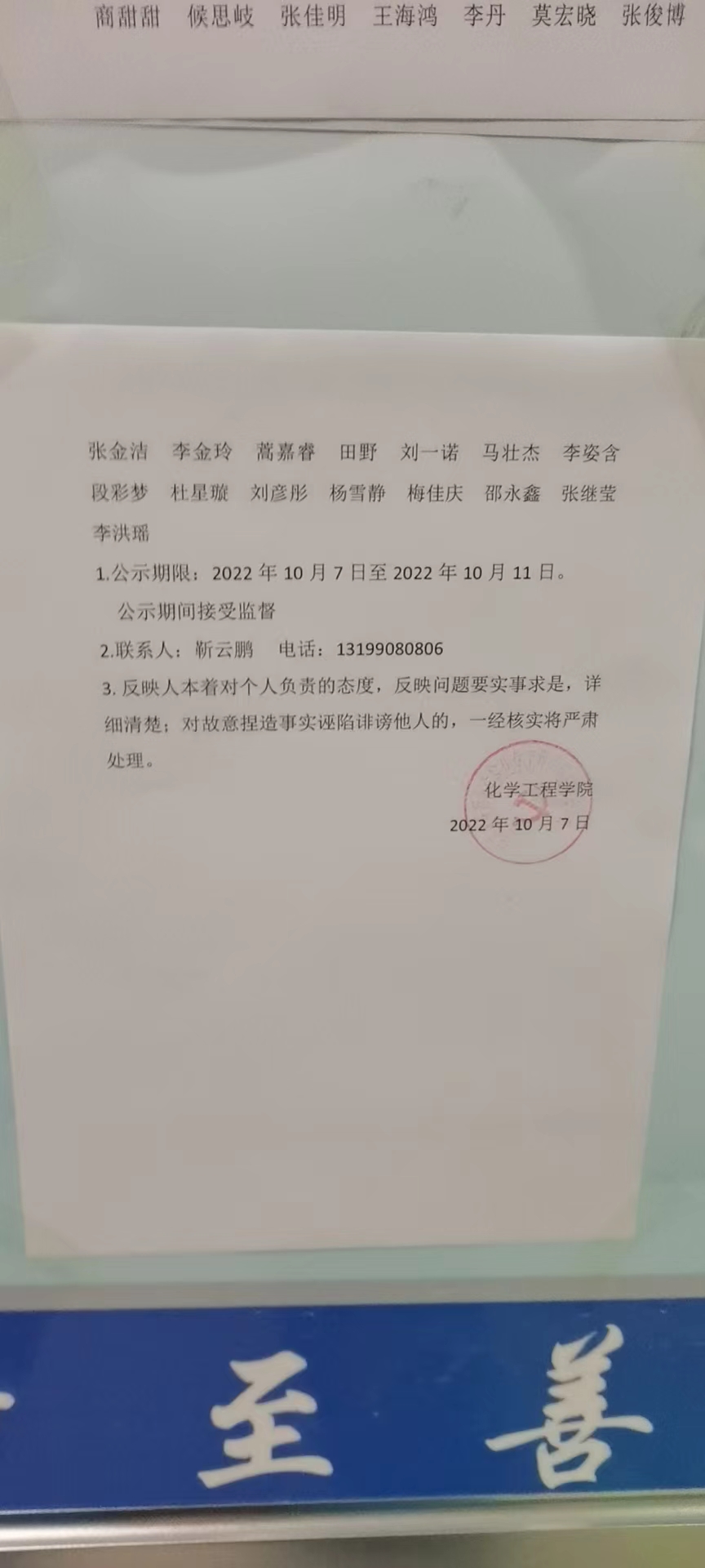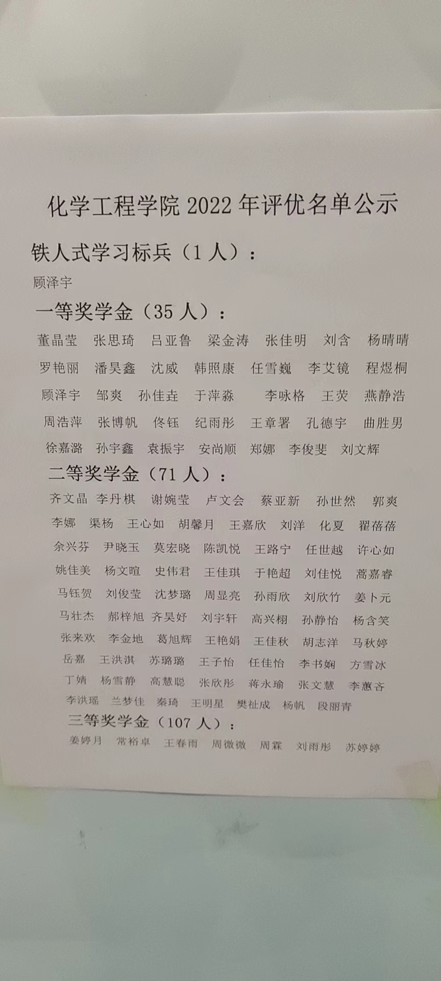 化学工程学院 2022年国家奖学金、国家励志奖学金公示名单