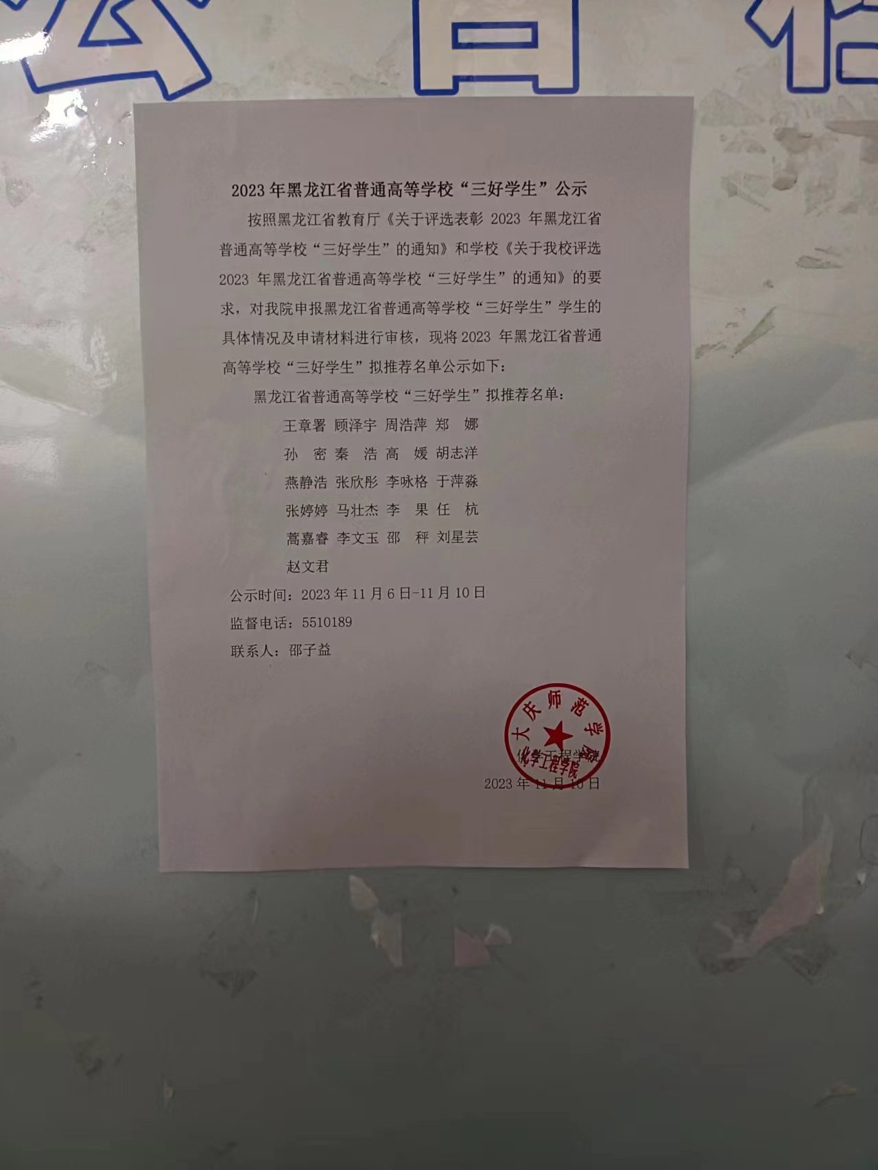 2023年黑龙江省普通高等学校“三好学生”公示