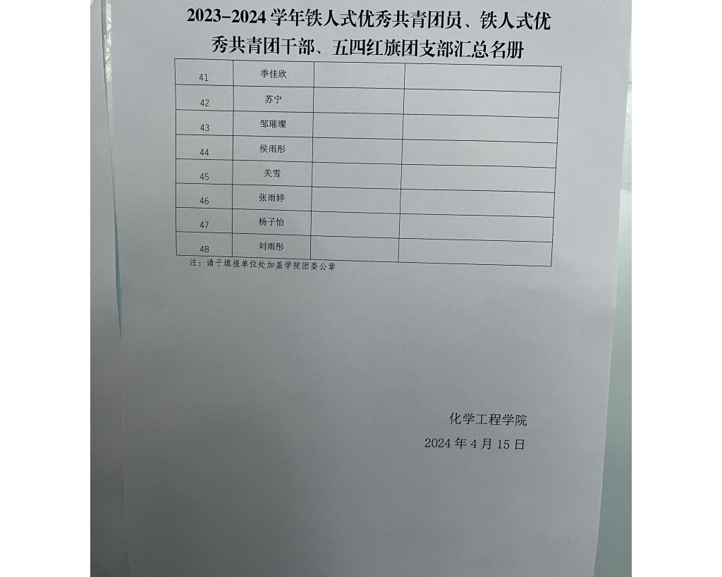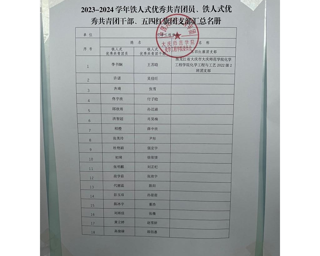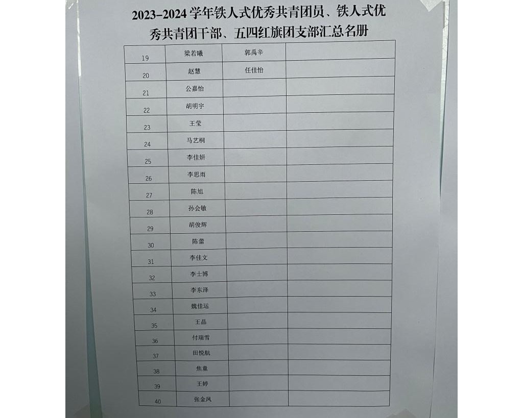 2023-2024学年铁人式优秀共青团员、铁人式优秀共青团干部、五四红旗团支部公示