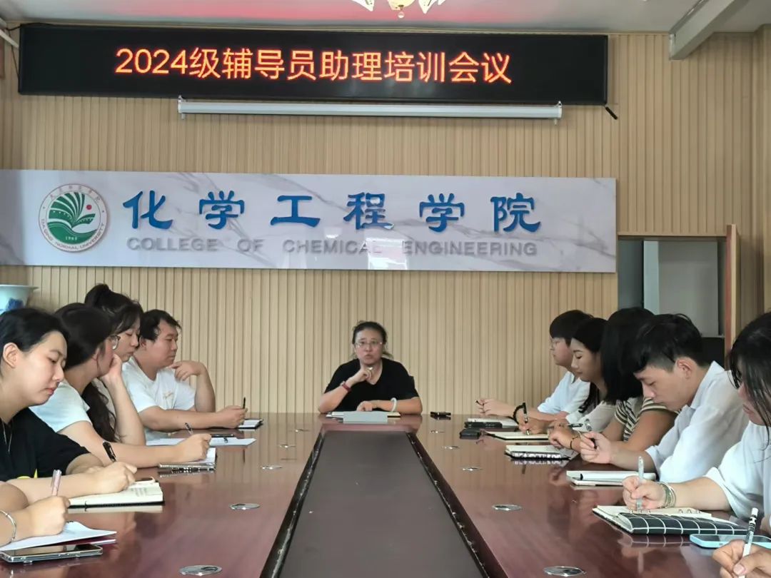 为充分做好2024级新生的迎新工作,全面提升2024级辅导员助理的综合素质,充分发挥学生组织工作人员的示范引领作用,8月25日,化学工程学院召开2024级辅导员助理培训会议。辅导员老师韩冬、邵子益、李科含,全体2024级辅导员助理参与此次会议。