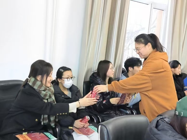 随后,辅导员老师们为考研学生们送上学院精心筹备的慰问礼品。这些礼品承载着学院对学生们无微不至的关怀与坚定不移的支持,更传递着对学生们在考研征程中斩获佳绩、拥抱光明未来的殷切期许,助力学子们以昂扬斗志和坚定信念迎接挑战,砥砺前行。
