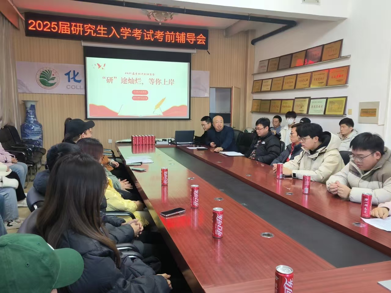 考研临近,为缓解考研学生备考压力,增强备考信心,鼓舞考研士气,12月2日,化学工程学院召开2025届研究生入学考试考前辅导会。本次会议由我院党总支副书记徐宏书主持,院长高清河,副院长唐龙,辅导员靳云鹏、韩冬、邵子益、李科含老师及部分2025届考研学生参加会议。
