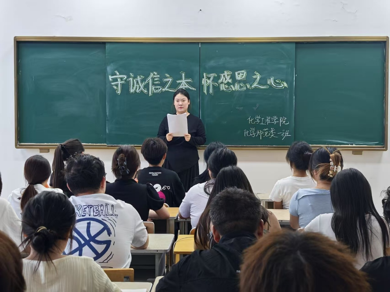 班会上,学生们主动担任宣讲员。他们通过讲述考试作弊、借款不还等诚信反面案例,剖析失信行为的后果;结合父母无私付出、老师耐心教导、同学热心帮助等真实故事,分享感恩感悟。宣讲过程中,穿插提问互动,以通俗易懂的语言阐释诚信与感恩的意义,引导同学们树立正确价值观,将诚信与感恩融入日常生活。