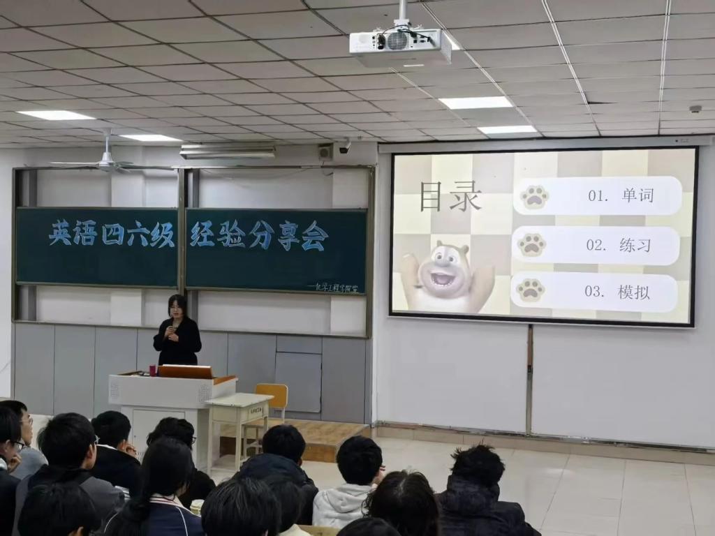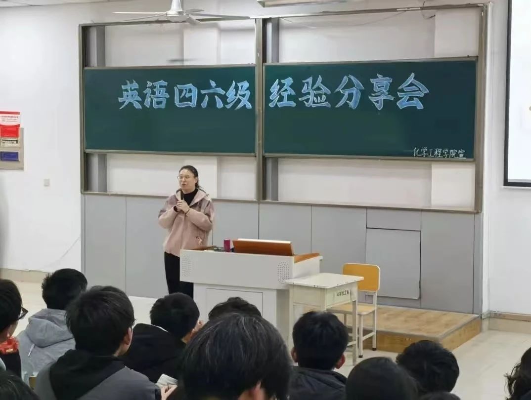 为了帮助2024级学生夯实英语基础、掌握科学备考四六级的方法,快速适应新学期的节奏,在学业道路上稳步前行,化学工程学院于3月26日召开英语四六级经验分享会。会议由辅导员韩冬老师主持,2024级全体学生参会。