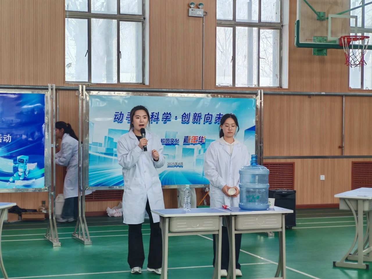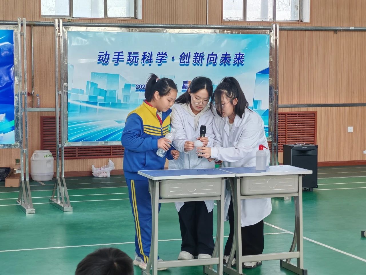 活动中,酸碱彩虹实验展示了酸碱指示剂遇不同溶液的变色现象。滴入指示剂后,透明液体迅速呈现出多彩变化,直观呈现化学反应的奇妙过程。