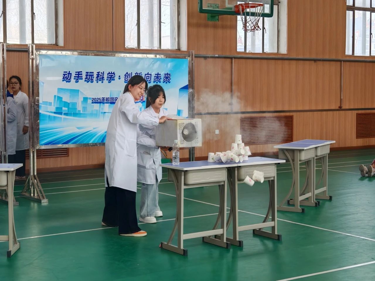 烟雾泡泡实验中,梦幻般的巨大泡泡裹挟着朦胧烟雾腾空而起,直观呈现气体的物理特性。