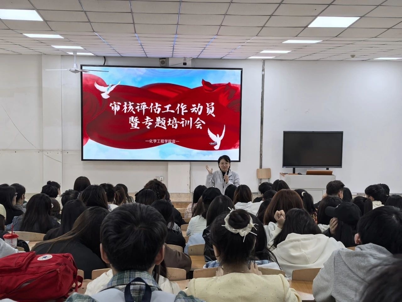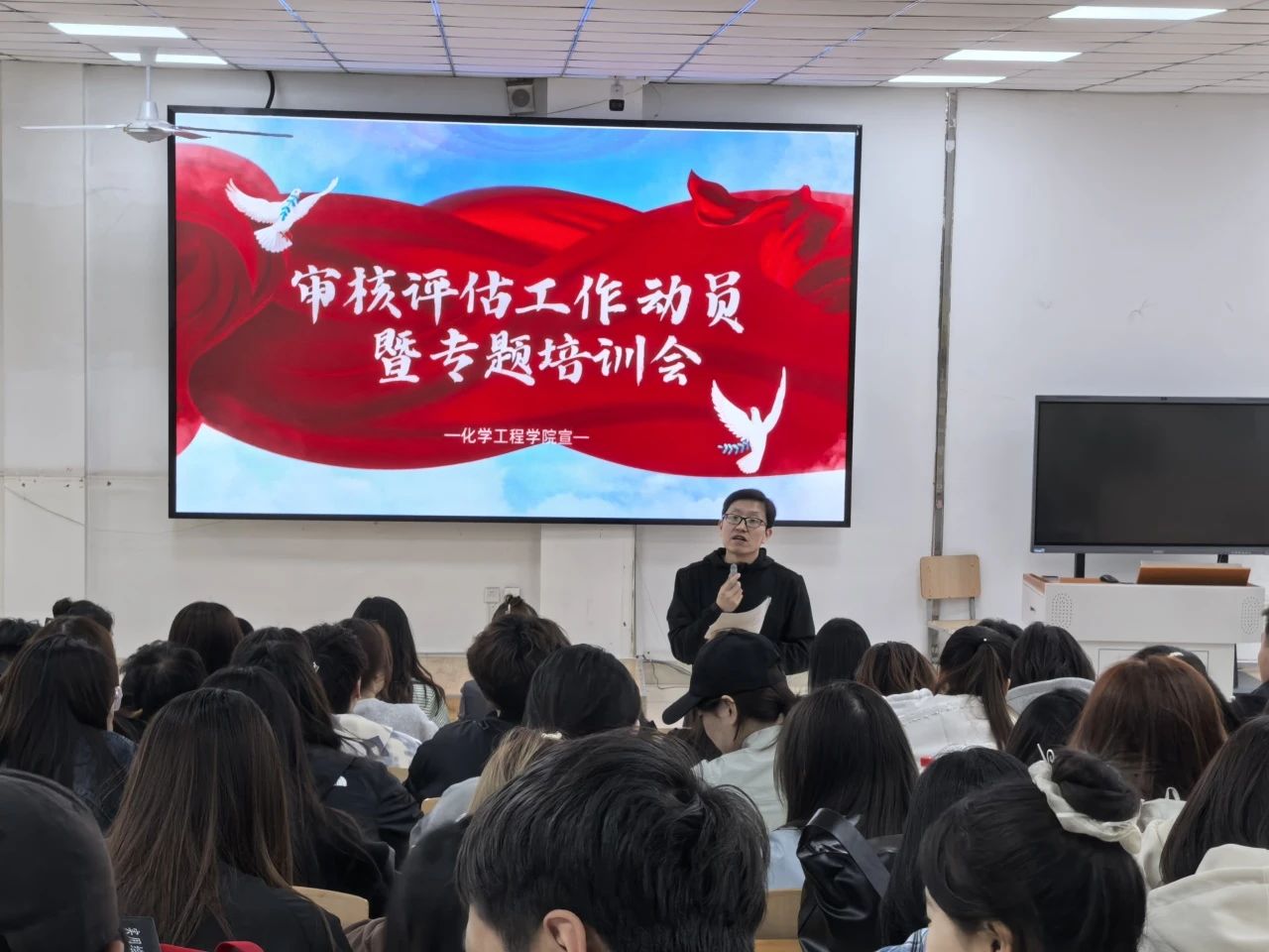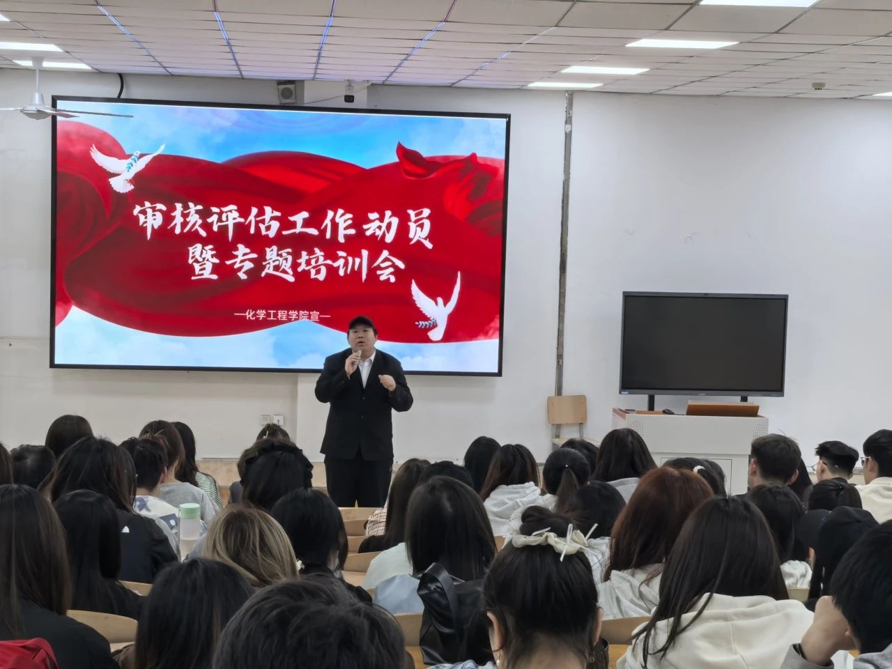 为扎实推进本科教育教学审核评估筹备工作,全方位强化学生的迎评责任感与参与度,化学工程学院于2025年5月9日组织召开审核评估工作动员暨专题培训会。本次会议由学生工作办公室负责人靳云鹏老师,辅导员韩冬、邵子益老师共同主持,旨在加强全体学生“迎评”的责任感与使命感。