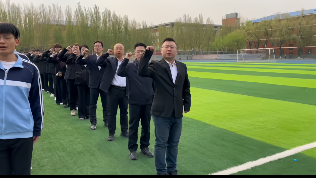 随后,在领誓人张明麒的带领下,全体师生进行集体宣誓:我们将秉承“自强不息,臻于至善”的校训,不忘初心,饱含热情,严以律己,振奋精神,服从安排,顾全大局,全力以赴,为学院评估贡献力量,用行动为学校争光,用拼搏为庆师担当。
