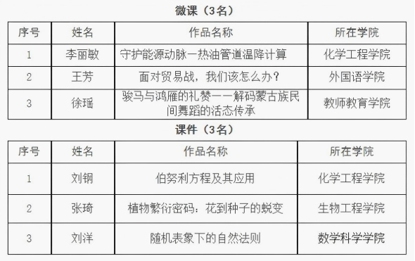 4月29日至5月20日,我校完成第十二届黑龙江省微课教学比赛、青年教师多媒体课件制作大赛参赛教师遴选推荐工作。经各学院推荐、校外专家组盲审,化学工程学院李丽敏老师、刘钢老师脱颖而出,分别荣获微课比赛和多媒体课件制作大赛第一名。