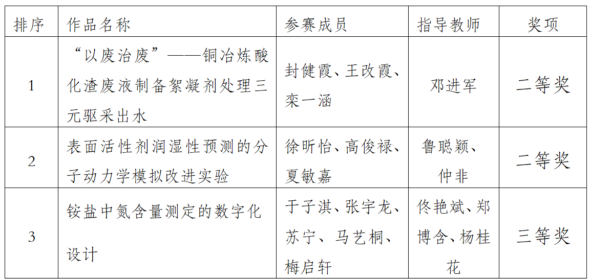 校院经层层选拔与系统筹备,选拔三支团队参赛。在激烈比拼中,各团队凭借扎实的专业功底与创新实践能力脱颖而出。最终,我校三支团队共斩获二等奖2项、三等奖1项,充分展现了化学学科的育人成果。