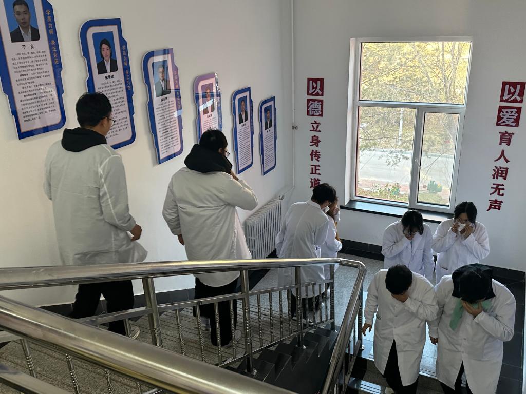 演练前开展前置安全教育,明确疏散路线、应急手势及注意事项,为演练顺利开展筑牢基础。13时50分,火灾警报响起,模拟实验室突发“火情”并产生烟雾。新生们在教师引导下,弯腰低姿、湿毛巾捂口鼻,沿预定路线快速有序撤离,13时58分全体新生均安全抵达集合点,完成人员清点,无一人遗漏。
