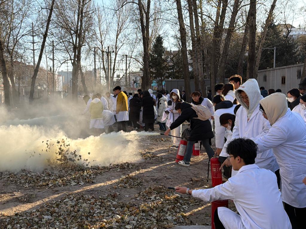 演练尾声,高清河作总结讲话。他对本次演练的有序开展和良好成效给予充分肯定,并向全体新生提出四点要求:一是要牢固树立安全意识,深刻认识实验室安全是教学科研的 “生命线”,始终守住安全底线、坚守安全红线;二是要将本次演练所学的消防器材使用、应急疏散等知识牢记于心,做到学以致用;三是要规范安全行为,在今后的实验学习中严格遵守操作规程,杜绝违规操作,从源头防范安全隐患;四是要争做安全的守护者、参与者和实践者,主动传播安全知识,带动身边同学共同营造 “人人讲安全、事事为安全、时时想安全、处处要安全” 的良好氛围。高清河特别强调:“每一次规范操作,都是对自己和他人生命的负责。”
