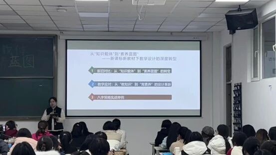 讲座伊始,李越老师从国家育人蓝图与教育发展前沿出发,深刻剖析了传统教学模式与素养导向教学模式的根本差异。通过对比“知识本位”与“素养本位”的教学目标、内容组织和评价方式,李老师明确指出,新课标背景下的教材不再是静态的“知识载体”,而是培养学生核心素养的“动态蓝图”与“资源支架”。这一前沿解读为同学们厘清了教学改革的底层逻辑与发展方向,实现了教学理念的“破冰”与“升级”。
