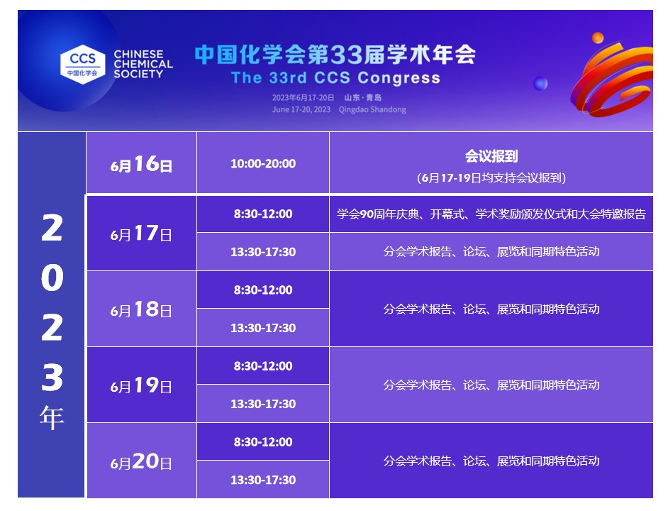 地点:山东省•青岛市年会简介中国化学会第33届学术年会将于2023年6月17日至20日在山东省青岛市举行,6月16日报到。本届年会由中国化学会主办。
