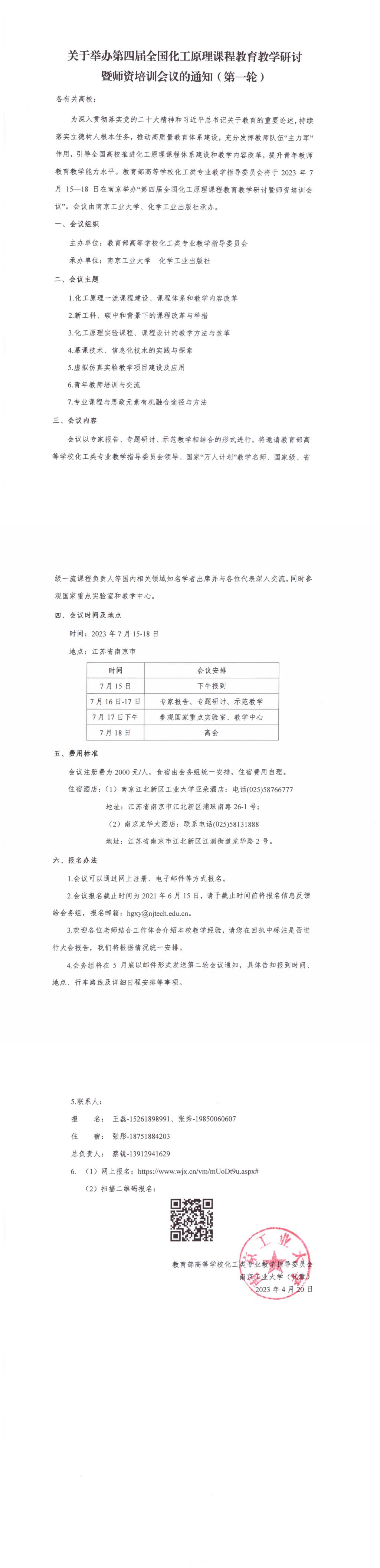 关于举办第四届全国化工原理课程教育教学研讨暨师资培训会议的通知