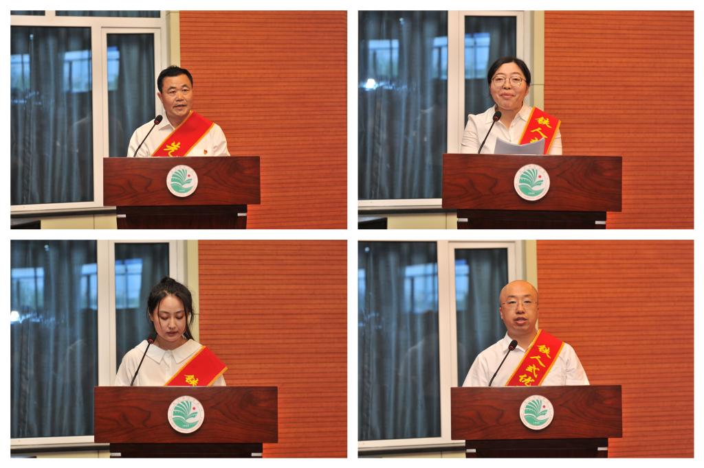 先进党组织代表刘国清、铁人式优秀党务工作者代表徐宏书、铁人式优秀共产党员教师代表赵晓菊、学生代表姜珊珊四位同志分别结合自身实际,先后做典型发言。