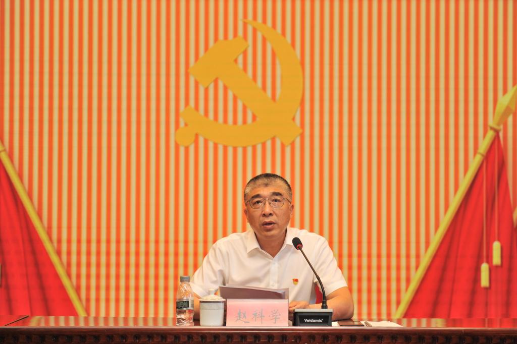 党委书记赵科学同志发表讲话,他强调各级党组织要提高政治站位,认真落实,扎实开展主题教育;要强化责任,严格要求,夯实党建工作基础;要知行合一,示范引领,推动学校事业发展。