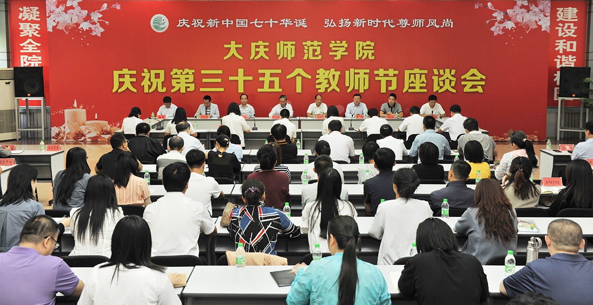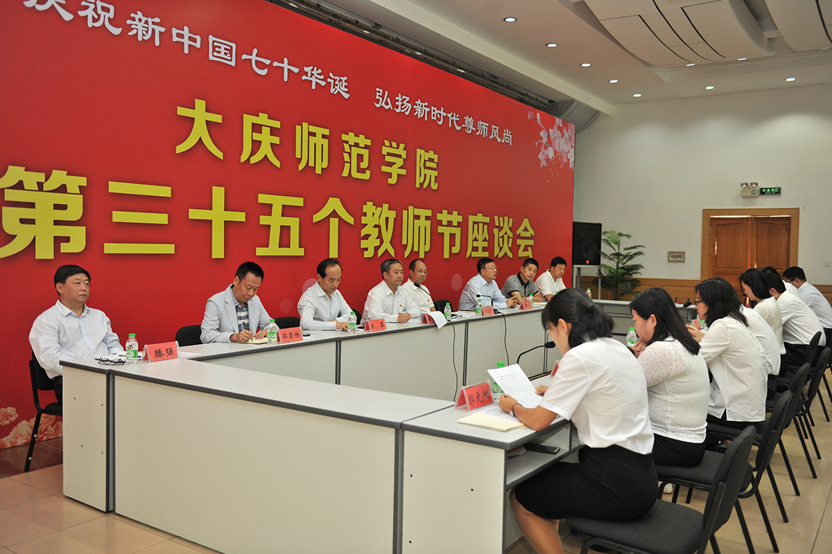 9月10日下午,我校在铁人讲堂隆重召开庆祝第三十五个教师节座谈会。学校领导徐克明、乔志和、王革、张国军、郭崇林、王福友、滕强、徐晓东以及教师代表、各单位党政领导、机关负责同志200余人出席座谈会。