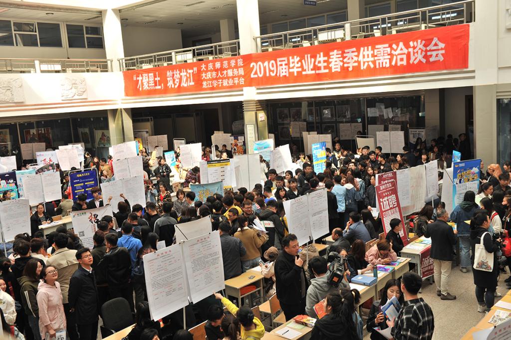本次供需洽谈会由大庆市人才服务局、龙江学子就业平台和我校共同举办。共吸引了福建东盛教育集团、北京擎科生物科技有限公司、宁波多乐米音乐文化传播有限公司等省外企业42家;黑龙江三江美术职业学院、哈尔滨三联药业股份有限公司、齐齐哈尔龙江阜丰生物科技有限公司等省内企业138家,共计180家用人单位参会,提供就业岗位近6000个。据不完全统计,我校有501名毕业生与用人单位达成了就业意向,占毕业生总数的20.6%。
