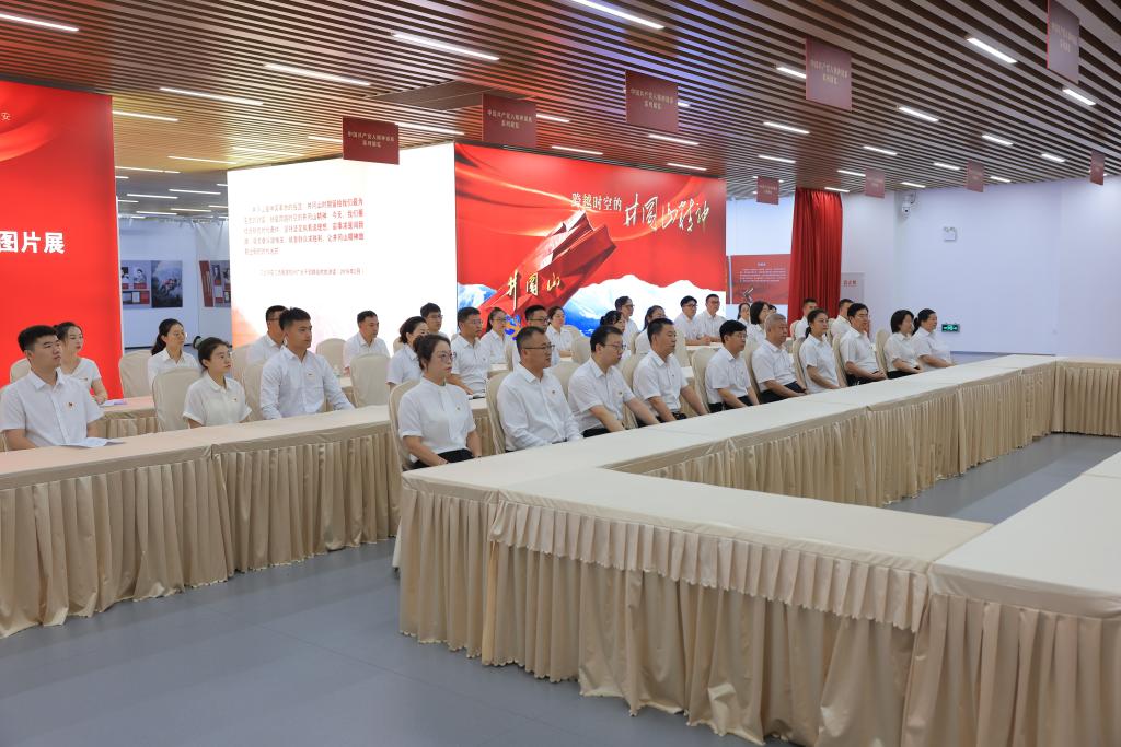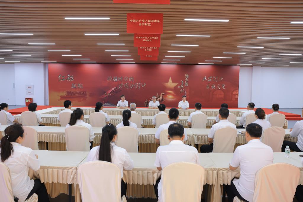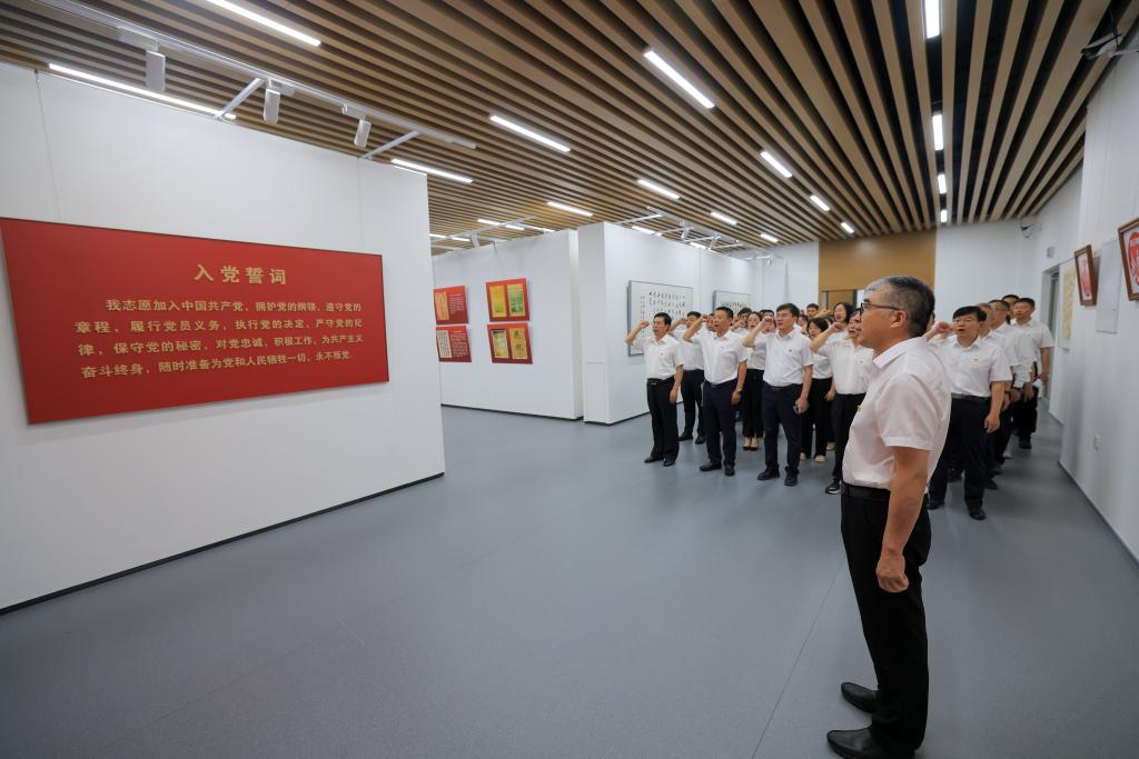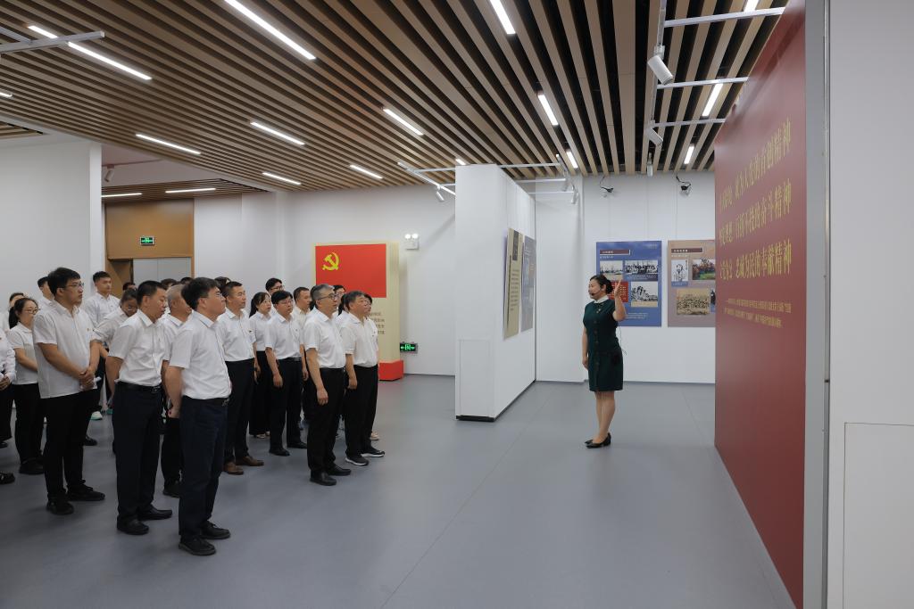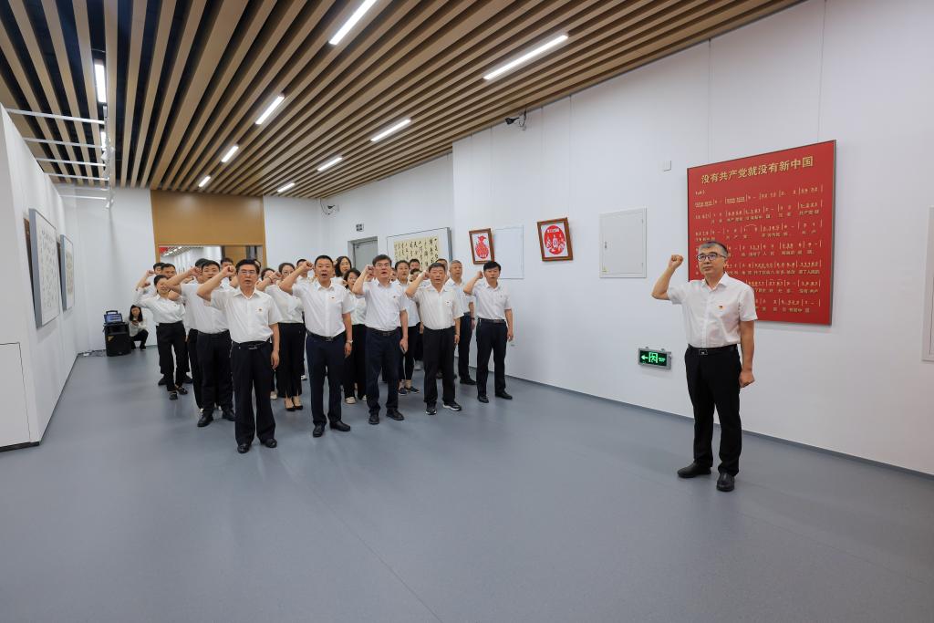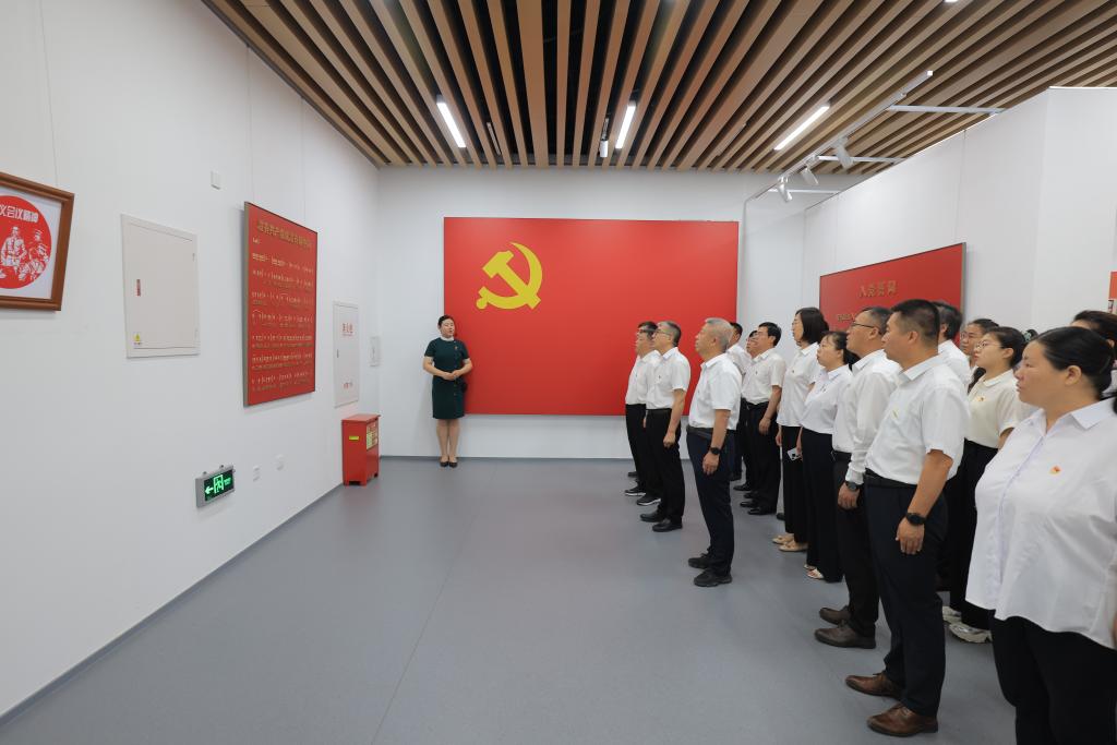随后,大家参观了中国共产党人精神谱系展览,当来到“红船起航”展厅,一张张满载革命历史的珍贵照片,一个个生动感人的红色故事,大家仿佛回到了那个充满理想与斗争的年代,深刻理解了中国共产党成立的重大历史意义,越发感觉到初心和使命无比重要。在赵科学的领誓下,全体党员面向鲜红党旗重温入党誓词,铿锵有力的誓言响彻展馆,既是对入党初心的重温,更是对忠诚于党、奉献于党的郑重承诺。宣誓结束后,全体人员齐唱《没有共产党就没有新中国》,用激昂的歌声抒发对党的无限热爱与忠诚。