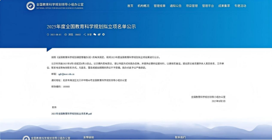 8月5日,全国教育科学规划领导小组办公室公布2025年全国教育科学规划拟立项名单,我校在此次项目立项中表现卓越,实现了在国家高层次教育科研项目领域的重大突破。