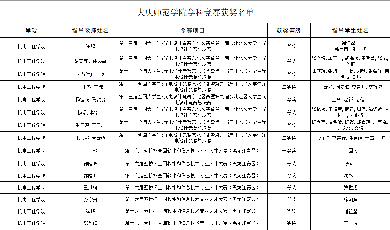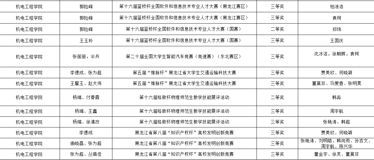 机电工程学院在全国大学生光电设计竞赛东北区赛中,以一等奖1项、二等奖6项强势刷屏;在蓝桥杯省赛中获一等奖2项、二等奖3项、三等奖4项,并在接下来的国赛中荣获二等奖、三等奖。在全国大学生智能汽车竞赛、“维脉杯”交通运输科技大赛、“知识产权杯”创新竞赛、“格致杯”物理师范生教学技能展评等赛事,机电工程学院累计荣获省级及以上奖项20余项,机电学子用实力“出圈”!