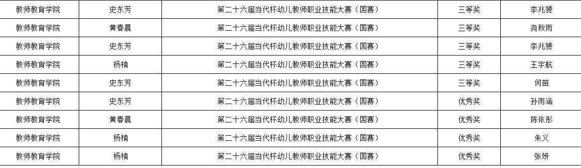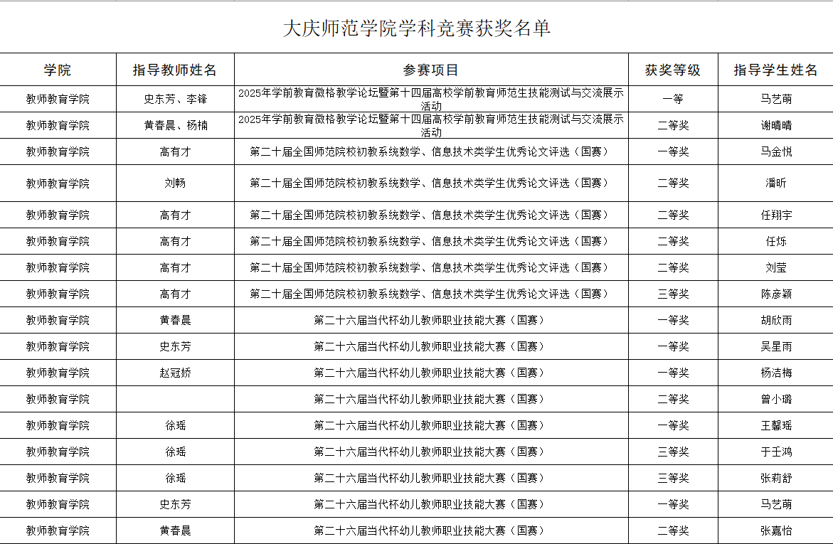 教师教育学院在全国师范院校初教系统优秀论文评选中,一举拿下一等奖1项、二等奖4项、三等奖1项,用学术厚度擦亮师范底色。第十四届高校学前教育师范生技能测试与交流展示活动,一等奖、二等奖花落教师教育学院;第二十六届“当代杯”幼儿教师职业技能大赛,累计揽获一等奖5项、二等奖2项、三等奖6项——师范风采,全国瞩目!