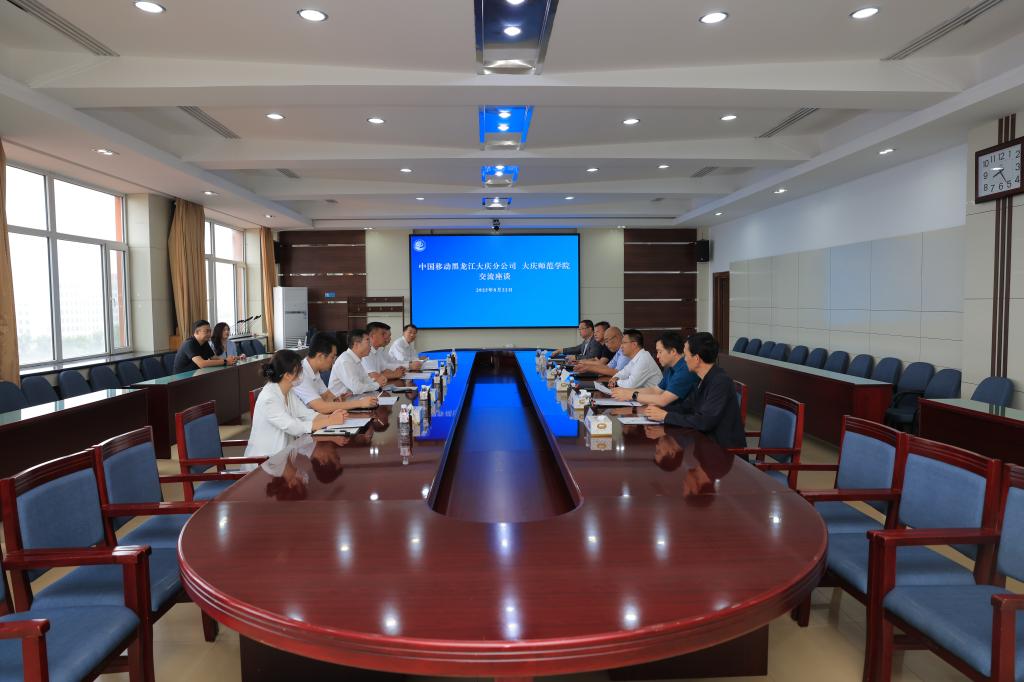 8月22日上午,中国移动黑龙江大庆分公司党委书记、总经理刘喜一行6人来校洽谈合作。校长、党委副书记张平,副校长周丹,办公室、财务处、实训管理中心、现代教育技术中心负责人参加。