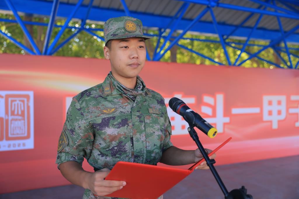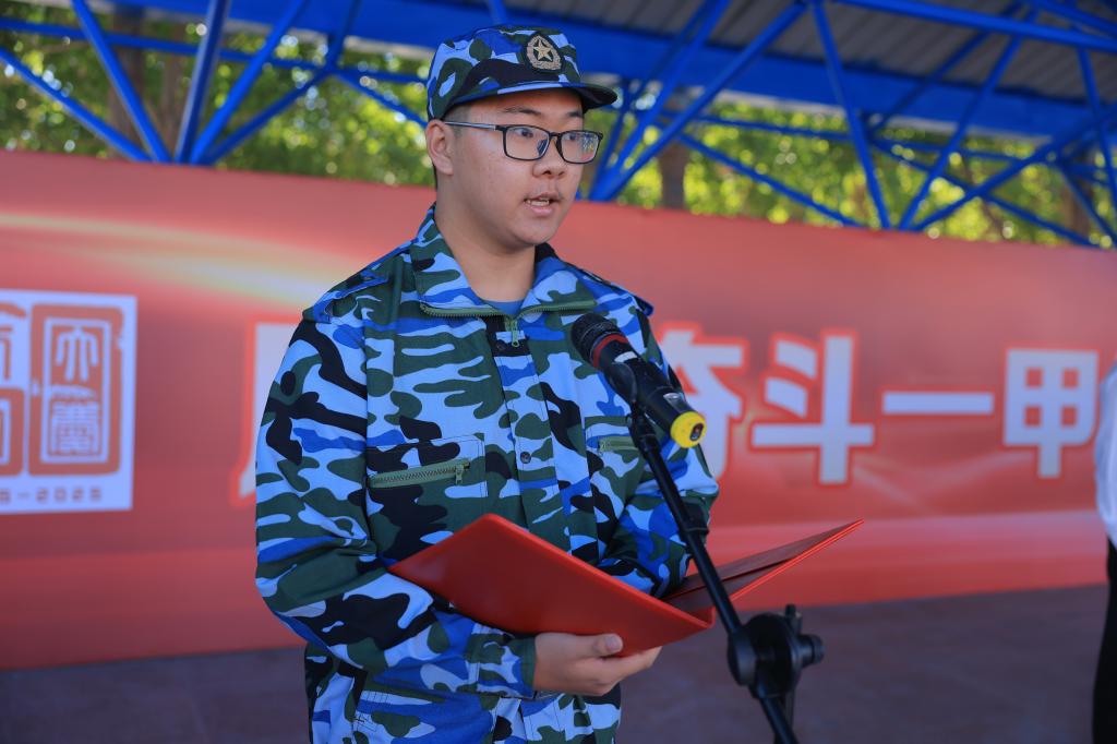 经济管理学院的郭思煜同学作为承训教官代表发言,表示要科学施训,把握好训练强度,把部队的好传统、好作风和好形象展现给同学们,确保安全圆满完成本次军训任务。