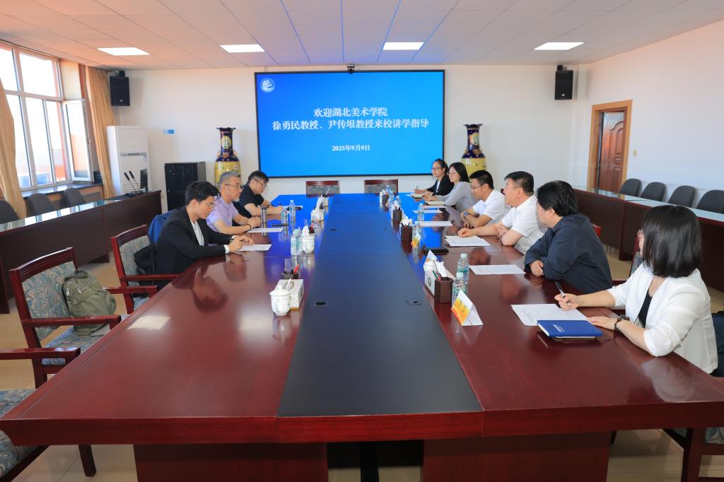 9月9日上午,湖北美术学院原院长、博士生导师、澳门城市大学博士生导师徐勇民、湖北美术学院研究生处处长 尹传垠一行来校对硕士学位授予单位建设工作进行指导。校长、党委副书记张平,副校长许双毅,科研处副处长(主持工作)陈立勇,美术与设计学院班子成员参会。