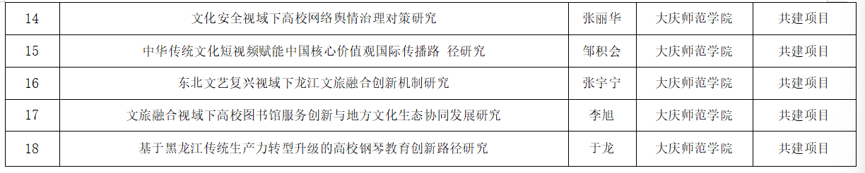 以上成绩得益于学校长期以来对科研工作的高度重视与持续投入,也凝聚着广大教师的智慧与汗水。未来,学校将继续优化科研管理机制,搭建高水平研究平台,为项目开展提供全流程支持。希望各课题负责人以此为契机,潜心钻研、扎实推进,力争将研究成果切实转化为推动龙江产业升级、文化繁荣与社会发展的实际成效,为黑龙江省高质量发展注入更多高校智慧与力量。(来源:科研处 撰稿:张彪 审核:张晓梅 编辑:姜丰翼)