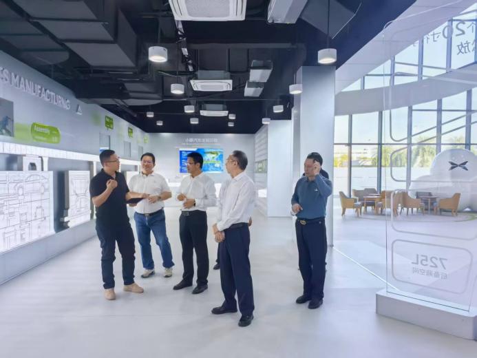 在小鹏汽车考察期间,张平一行参观了展厅并就汽车相关专业设计、人才培养与学生就业前景进行了交流。