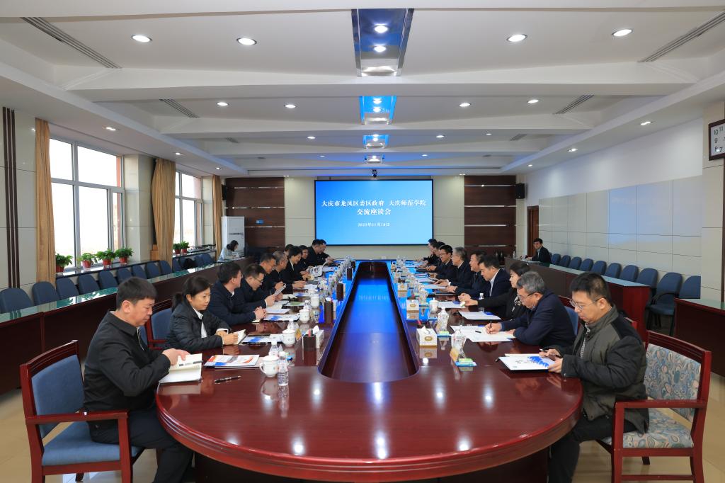 11月18日,大庆市龙凤区委书记曾宇凡,区委副书记、区政府区长刘怡爽一行12人来校调研交流。学校党委书记赵科学,校长、党委副书记张平,副校长许双毅,副校长周丹出席座谈会。办公室、教务处、科研处、招生就业处、继续教育学院、油田应用技术研究院、大庆精神与龙江西部经济社会发展研究中心负责人参加会议。会议由赵科学主持。