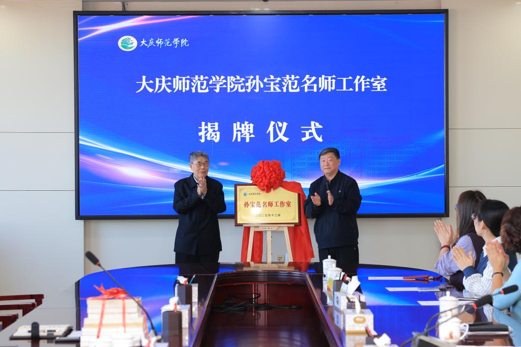 滕强与孙宝范共同为孙宝范名师工作室揭牌。