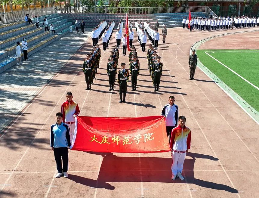 伴随着激昂的进行曲,各个方阵队迎着初升朝阳,迈着整齐的步伐有序进场。英姿飒爽的国旗护卫队方队、呼号嘹亮的各学院方队,他们精神抖擞、步履铿锵,以最好的状态向我们展示了这两周刻苦训练的成果。